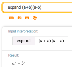 Veamos como resolver algunos de los productos notables utilizando Wolframalpha.