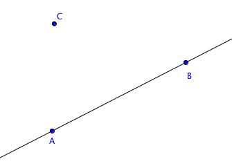Al igual que el ejemplo anterior dibujamos un punto C y una recta AB: