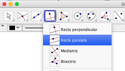 En geogebra elegimos el comando «Recta paralela»