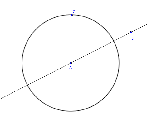 dibujamos una circunferencia con centro en A y radio C, como lo muestra la siguiente figura: