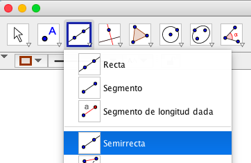 Primero construimos un ángulo cualquiera. Para eso utilizamos la herramienta «Semirecta«: