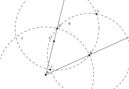 marcamos la intersección de las dos circunferencias, generando los puntos E y F: